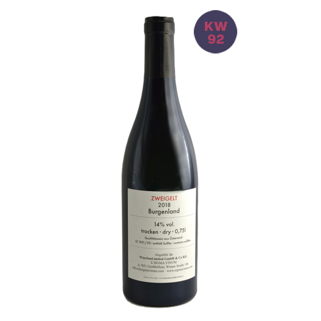 Dunkles Rubingranat, violette Reflexe, zarte Randaufhellung. Frische Zwetschken, Noten von Herzkirschen, feine Kräuterwürze, mit kandierten Orangenzesten unterlegt. Saftig, elegant, rotbeerige Nuancen, feine Tannine, frisch strukturiert, trinkfreudiger Stil, vielseitig einsetzbar.